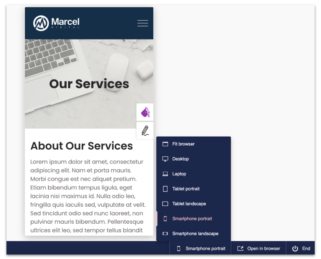 The CMS even allows you to preview your content on multiple screens/devices before publishing to ensure the layout is optimized for your users. See what your page looks like on a mobile device, laptop, or a desktop and make adjustments as needed before going live.
