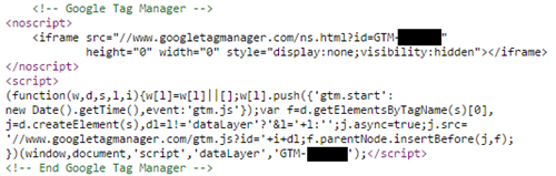 The <script> portion of the container must be placed in the head-section of your website and the <noscript> potion should be placed immediately after the opening <body> element.