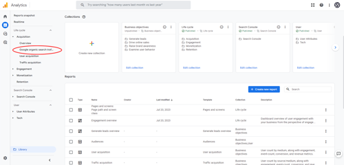 The GA4 interface offers a number of predefined reports, with both overview reports that summarize a topic and detail reports that gives users a look at their data more thoroughly. While these reports are helpful in analyzing data, you can customize them and the reporting navigation to tailor GA4 to meet your business’s needs. In the Reports Library, you can access all the reports and the collections they belong to that make up the navigation. Some of the customizations you can make to your detail reports include changing the dimensions and metrics, adding a filter, and changing the chart type. Once you’ve made your edits, you can add that report to a new or existing collection and publish it. Then you’ll be able to access your new custom reports straight from the reporting navigation.