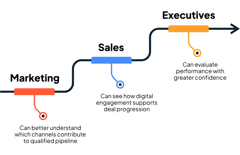 That alignment improves visibility across teams. Marketing can better understand which channels contribute to qualified pipeline. Sales can see how digital engagement supports deal progression. Executives can evaluate performance with greater confidence because the numbers are connected to consistent definitions and shared business logic.