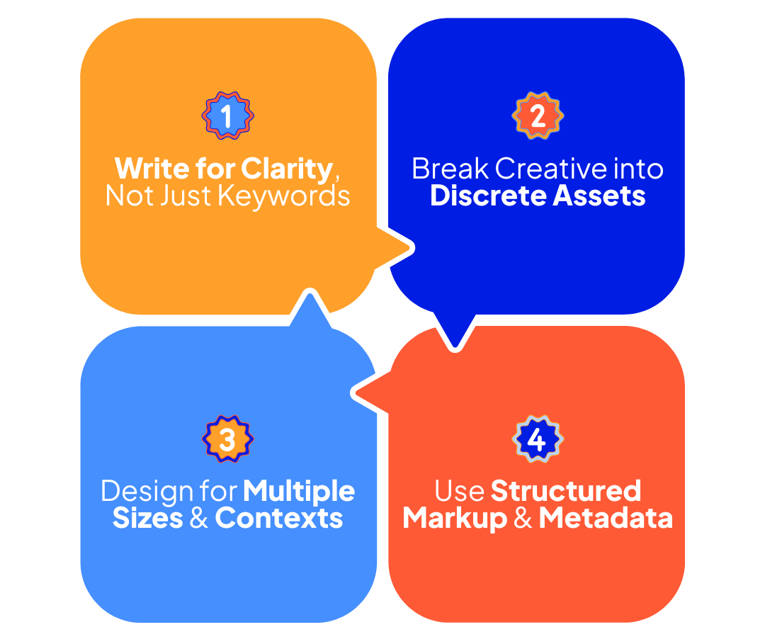 The most immediate implication is creative flexibility. Campaigns built with rigid ad copy and single-format visuals will not perform well in AI-native environments. Instead, advertisers must structure campaigns with creative modularity in mind.