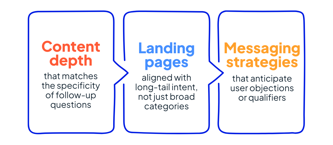 For example, if your product ad appears in an AI Overview for “best software for remote teams,” users may follow up with “which is most secure?” or “what integrates with Microsoft 365?” Your creative and content strategy must be ready to answer those questions.