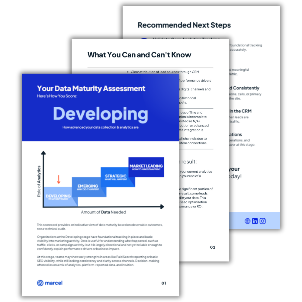 Marcel Digital offers an experienced perspective on all things Google. We’ve been an official Google Partner since 2003, and we’re experts in web analytics. Our team can help you create beautiful reports and customized templates that push your analytics to the next level. Contact us today to learn more about our services.