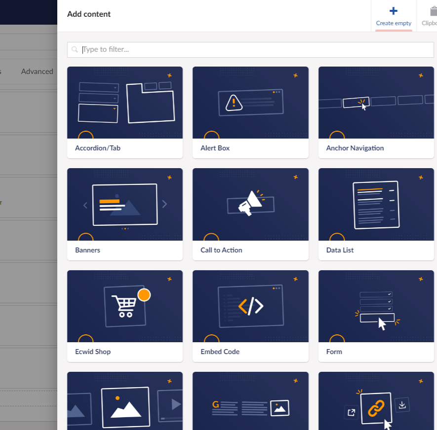 Components – Page elements like accordion tabs, banners, call-to-action strips, picture galleries, text, and more can be deftly dropped in place and positioned to create the most impact for your site visitors.
