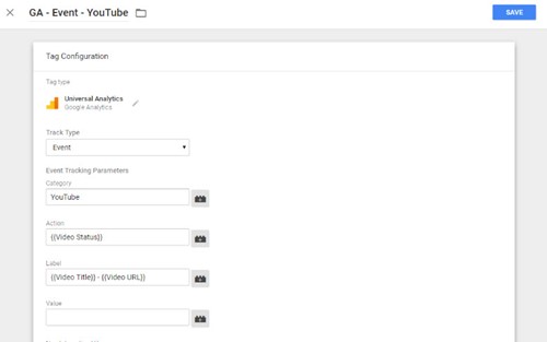 - Label your tag “GA - Event - Youtube” or something that makes sense to you.