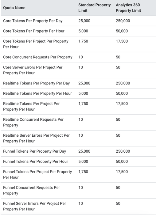 Daily Tokens Per Property Per Project: 25,000 (250,000 for GA4 360 users)