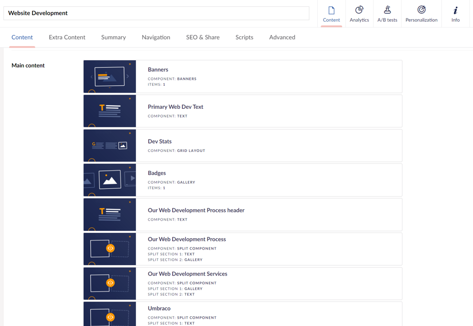 Every B2B business has its own set of requirements when it comes to content presentation. Some might need detailed product catalogs, while others might prioritize case studies and testimonials. Here is where Umbraco's flexibility shines. Its Page Builder allows for easy drag-and-drop functionality, enabling businesses to design pages that resonate with their brand and audience. Moreover, with the intuitive content editing experience and back office, businesses can create and manage content, ensuring that information is presented in an organized and accessible manner.