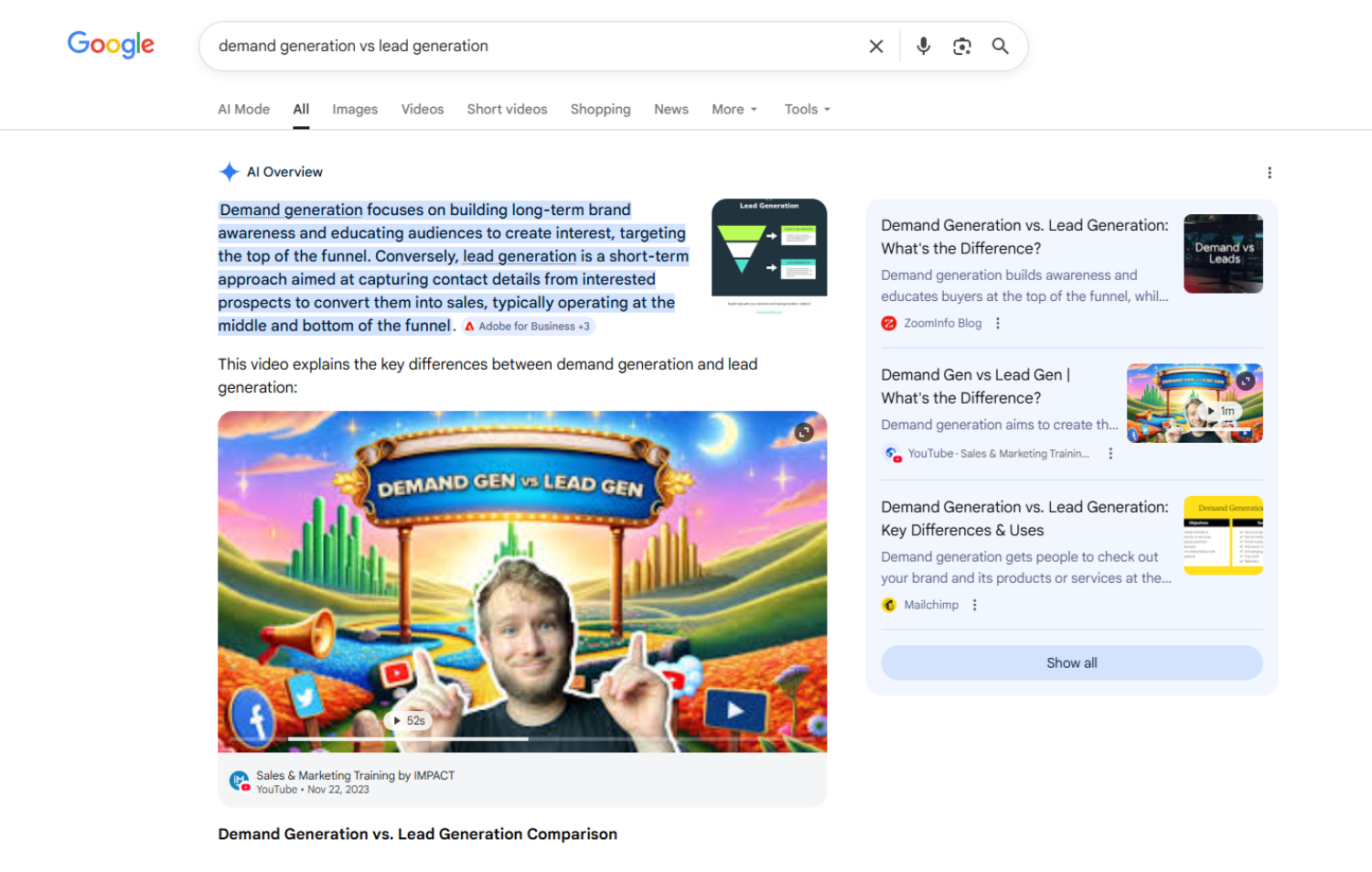 AI overviews analyze content across formats. When responding to a query, generative systems may pull from written explanations, supporting diagrams, embedded video segments, product images, or comparison charts. These formats are synthesized into a unified result designed to answer the user’s question quickly and visually.