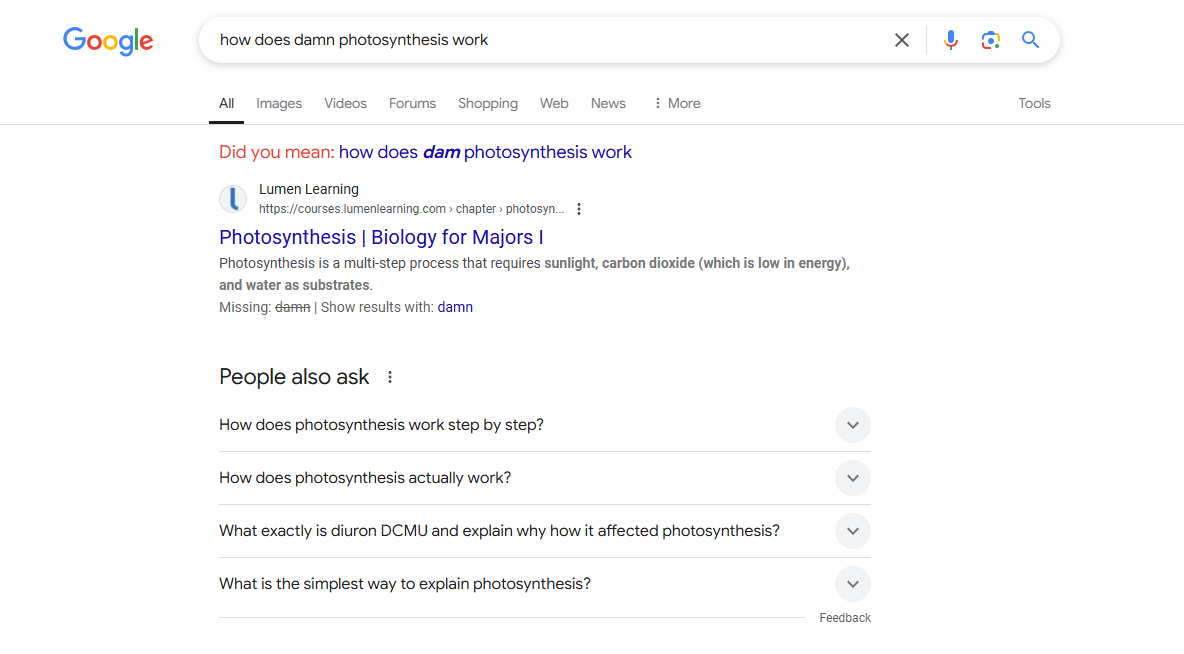 How does damn photosynthesis work → AI Overview disappears