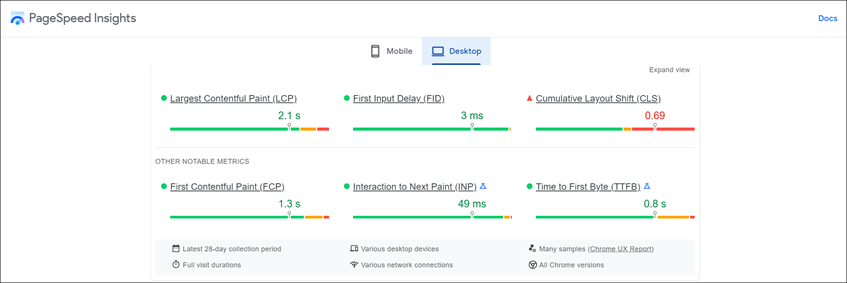 If you want to see how fast your website is now, use the Google Page Speed Insights Tool to check Key Performance Metrics (KPIs) such as:
