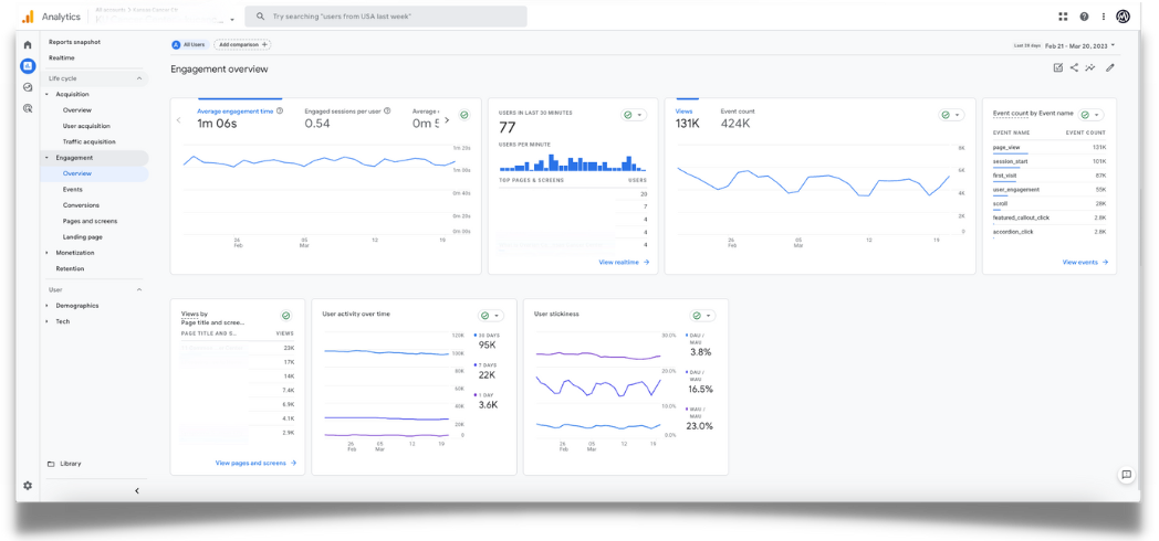 Google Analytics 4 (GA4) is an event-based web analytics tool that measures user behavior and interactions on your website With user-friendly dashboards and a streamlined interface, GA4’s data can inform your web and app designs, marketing content, and even sales decisions.