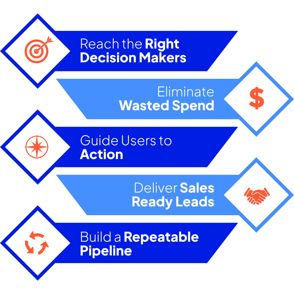 We focus on intent-based targeting, aligned messaging, and conversion optimization to ensure leads match your ideal customer profile and are ready to engage with sales.